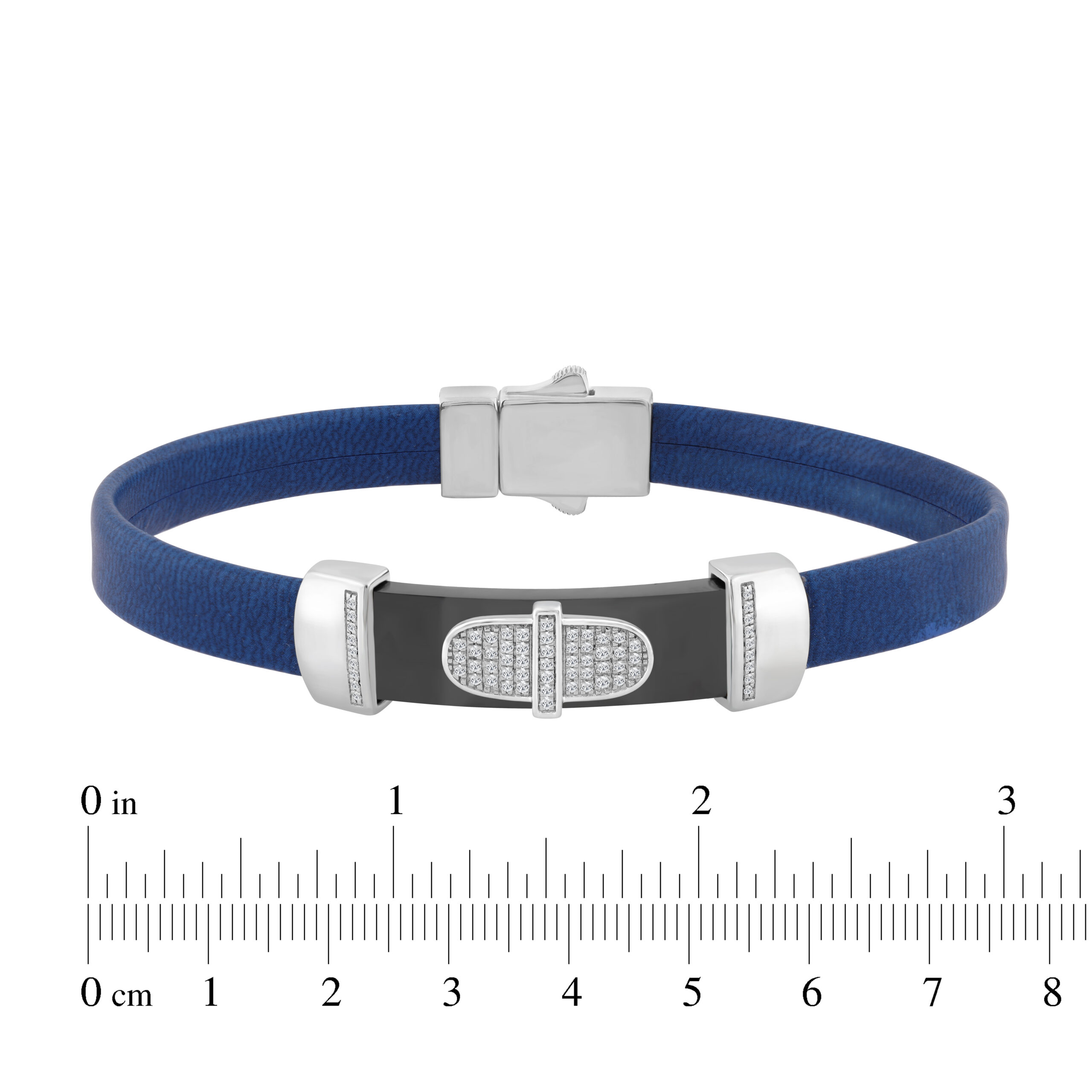 0.25 Ct Round Diamond Men’S Bracelet – Sterling Silver White With Rubber Strap (Blue/Black)