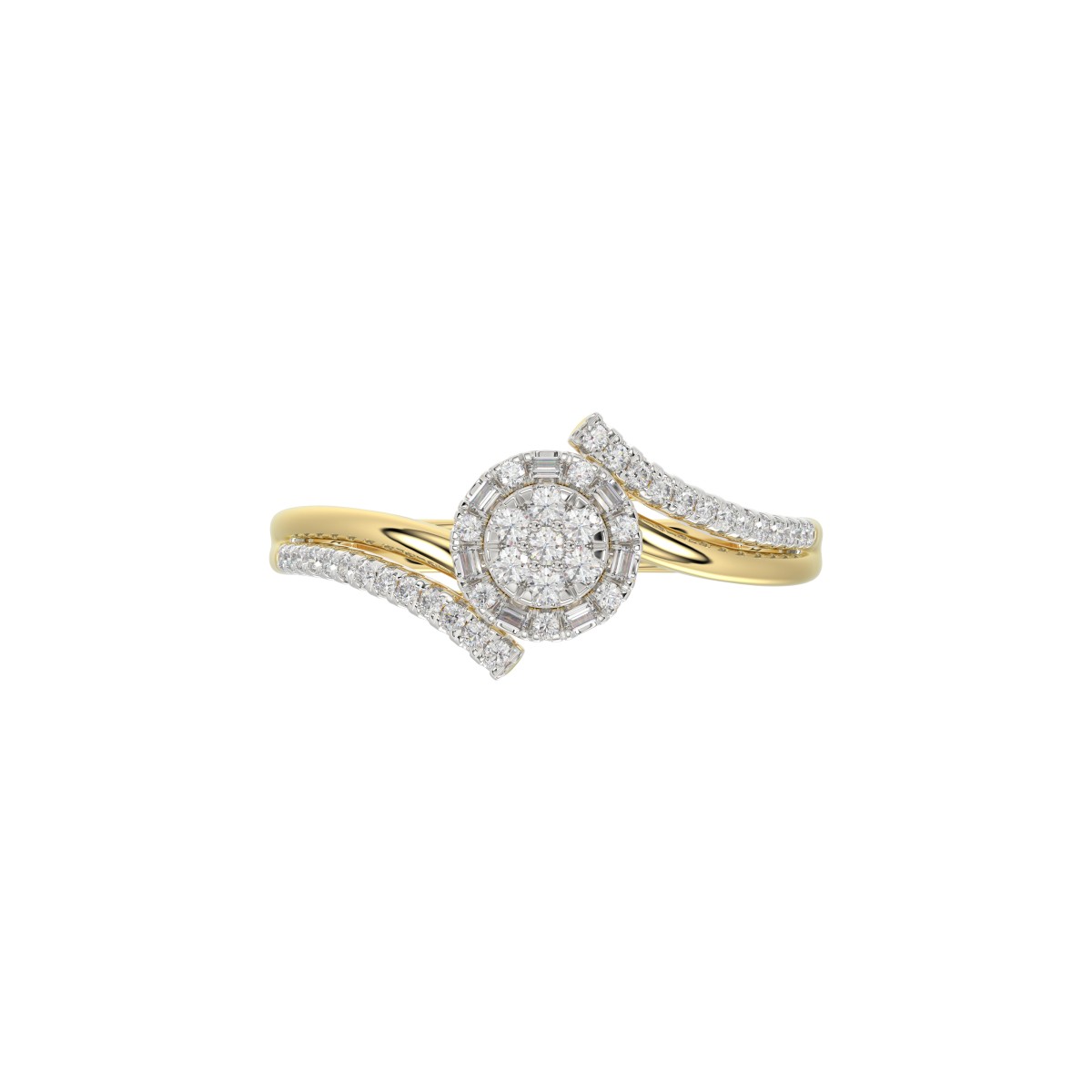 Elegant 10K Yellow Gold 0.20CT Round & Baguette Diamond Halo Ring For Women