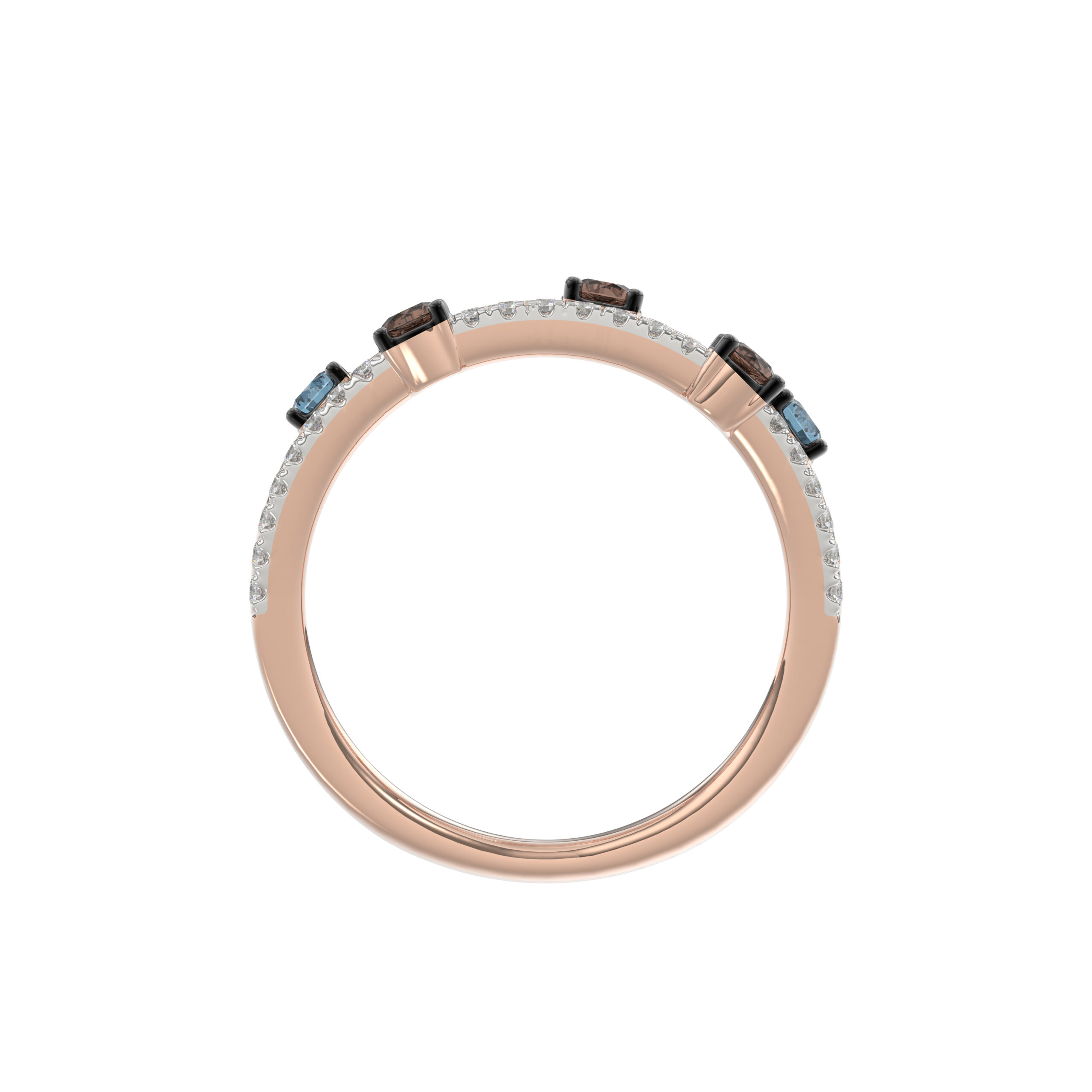 LADIES BAND 0.75CT ROUND/ROUND BLUE/DARK BROWN DIAMOND 14K ROSE GOLD