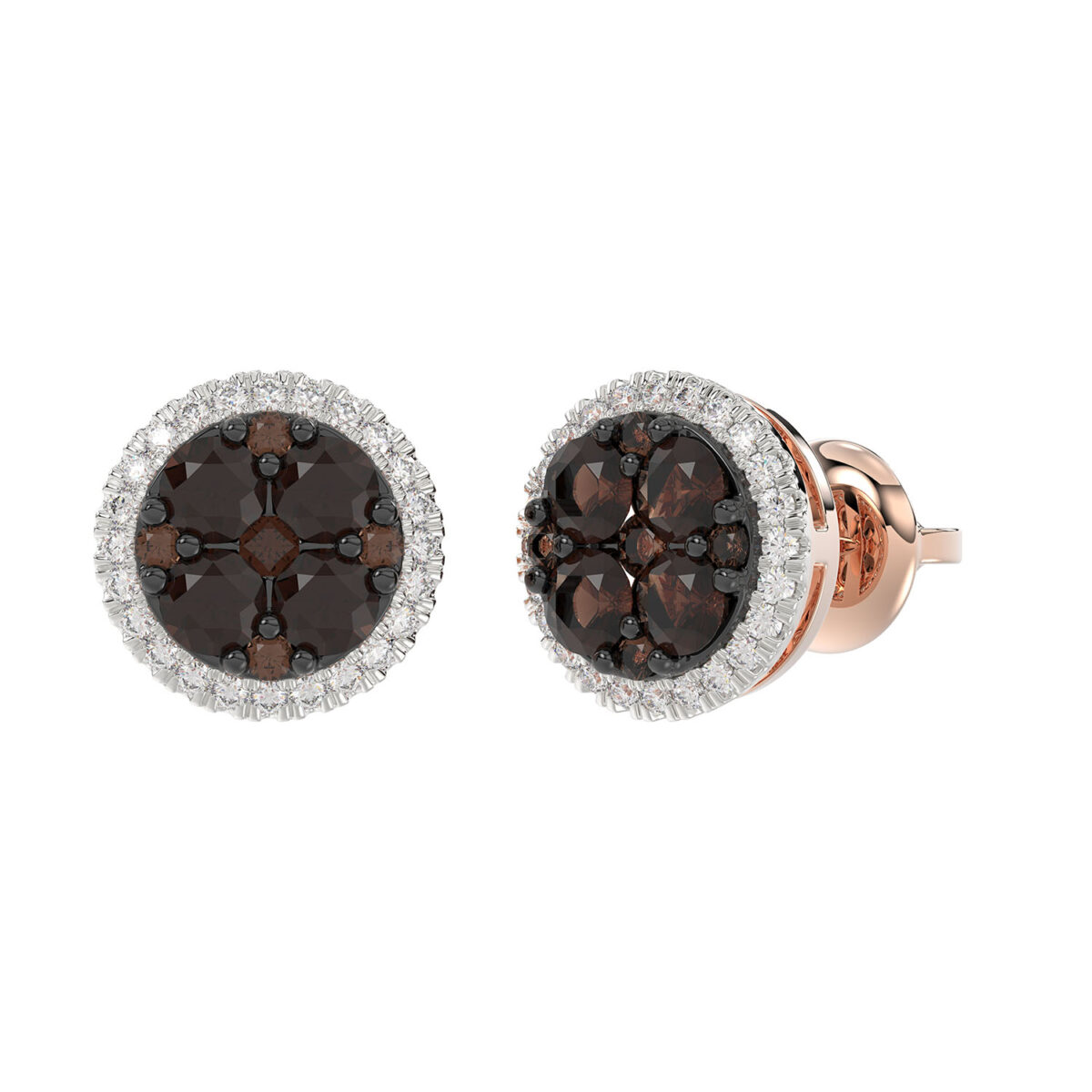 LADIES EARRINGS 0.50CT ROUND/DARK BROWN DIAMOND 14K ROSE GOLD