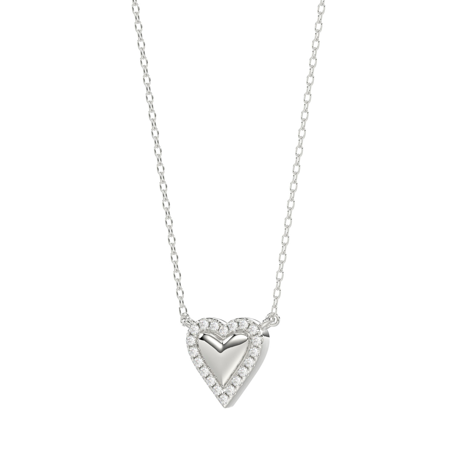 Round Diamond Heart Necklace, 0.10Ct Sterling Silver Love Necklace, Minimal Heart Charm Pendant For Your Loved One, Girlfriend Gift